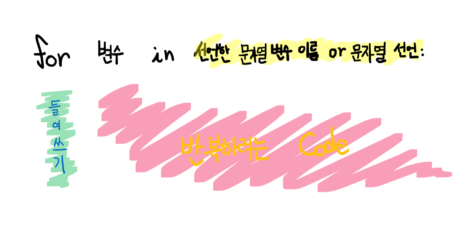 for문은 실행시키고자 하는 코드나 코드들을 일일이 다 작성하지 않고 반복을 통해 코드의 수를 줄여주는 매우 유용한 반복문입니다.