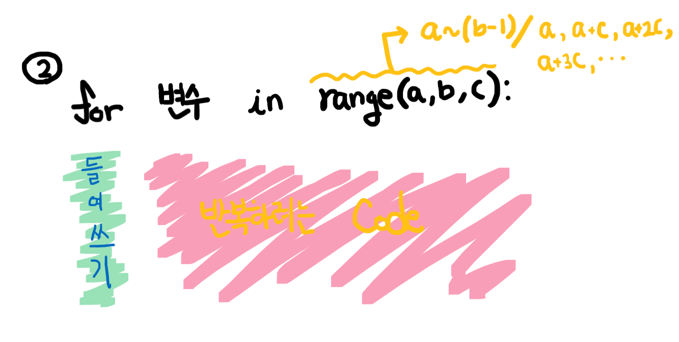 (이해하시기 쉽도록 1번 반복문 형태를 range(a, b)형태, 2번 반복문 형태를 range(a, b, c)형태라고 하겠습니다.)