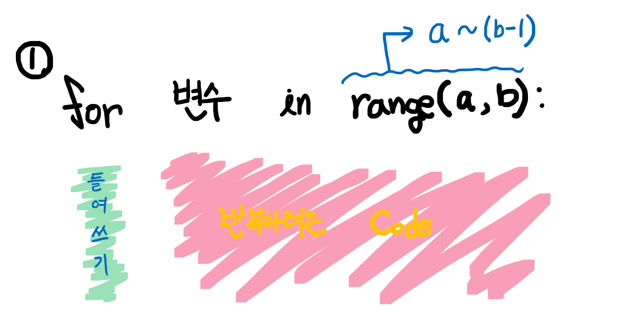 이때 a부터 b-1까지 반복된다는 점 유의해서 사용하셔야 합니다!