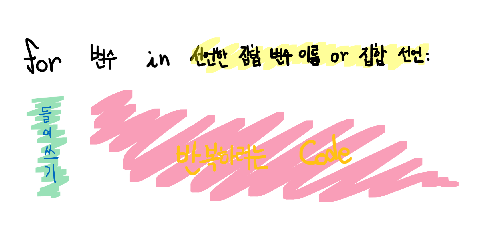 기본적인 for문의 형태는 아래의 그림과 같습니다.