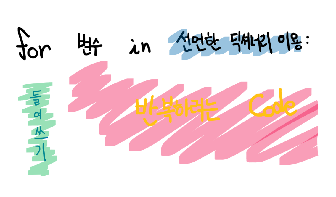 다음으로 알아볼 형태는 for문에서 딕셔너리를 활용한 예시에 대해 알아보도록 하겠습니다.