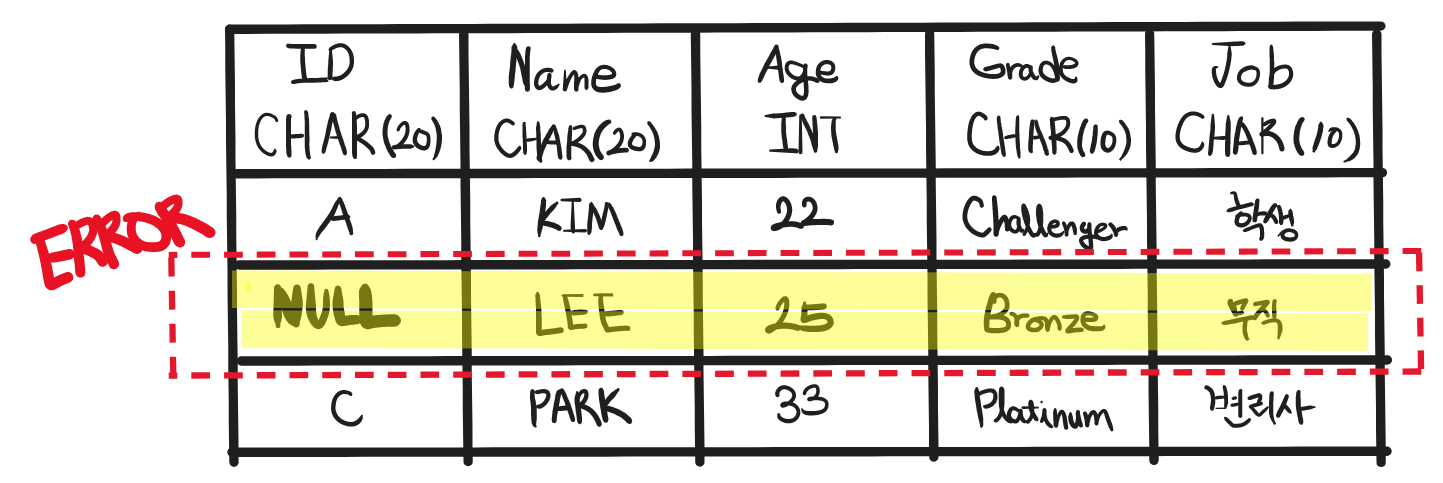 이것을 Integrity Constraint(무결성 제약 조건)라 하고, 무결성 제약 조건에는 개체 무결성 제약 조건, 참조 무결성 제약 조건이 존재합니다.